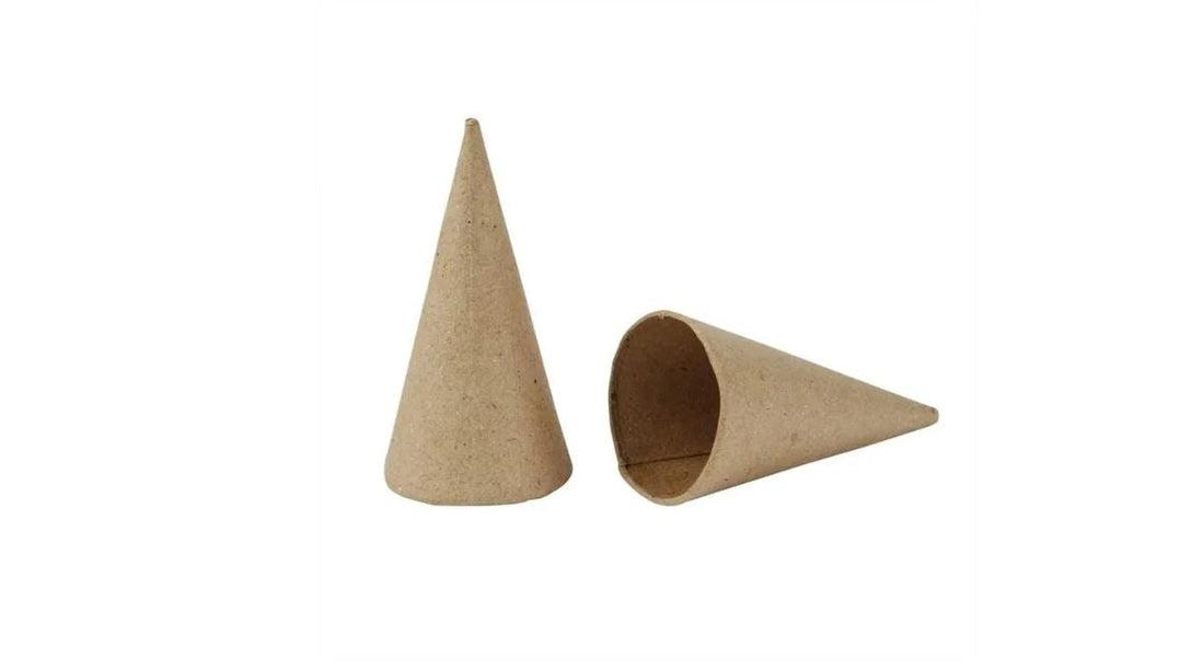 1 Pk., 10 Stk., H: 8 cm, Dia. 4 cm - Runde kjegler av pappmaché