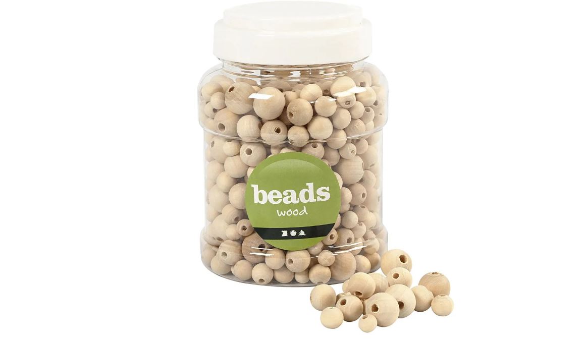 1 Spann, 400 ml, Dia. 8+10+12+15 mm, 2-3 mm, Kinesisk Bærtre, 175 g - Runde treperler i forskjellige størrelser