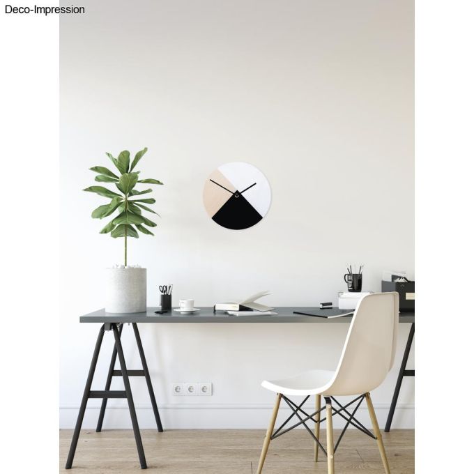 Urverket og viserene må bare skrus inn i treplaten. Før dette kan du tilpasse din veggklokke, f.eks. med maling, sjablong, stempel, ved å dekke den med stoff eller papir, ved serviett-teknikk, osv.