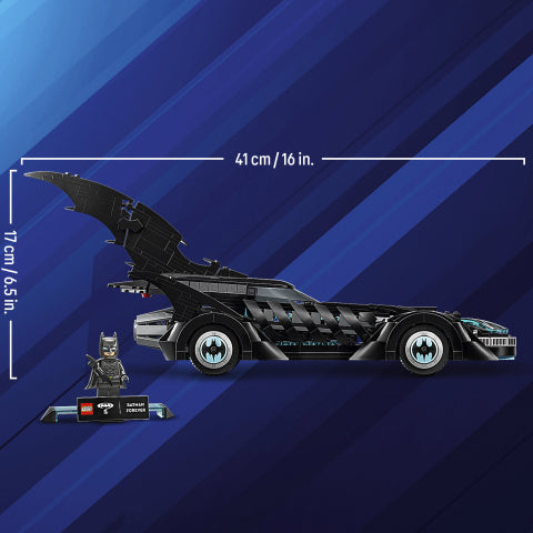 LEGO® DC Batman™: Batmobilen fra Batman Forever™ (76304) er et samlerbyggesett for DC Super Heroes™ som ønsker et givende prosjekt å bygge, leke med og stille ut for å imponere. Denne kreative LEGO® DC Batman leken er en kvalitetsgave til gutter og jenter fra 12 år og oppover. Denne autentiske gjenskapingen av den ikoniske bilen fra Batman Forever-filmen har en formstøpt frontrute, bevegelige hjul, detaljerte dekorasjoner og et førerhus som kan åpnes for å avsløre et detaljert interiør. Kjøretøyet inkluderer også en Batman-minifigur med sitt eget spesialstativ. For ekstra digital moro kan byggere zoome inn, rotere modeller i 3D og følge fremgangen sin ved hjelp av den intuitive LEGO® Builder appen. Settet inneholder 909 deler.