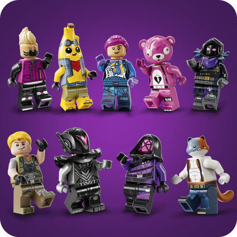 Få fart på fantasien med videospilleken LEGO® Fortnite® Battle Bus (77073) for fans fra ti år. Med dette byggesettet som er basert på det spennende videospillet, kan gamere bygge et kult Fortnite-kjøretøy. Fans kan reise inn i den spennende LEGO Fortnite verdenen mens de bygger bussen, som har roterende hjul, avtakbart tak og den velkjente luftballongen. Og det er bare begynnelsen! Når bussen er ferdig, kan de utforske ikonisk tilbehør som Slurp Juice, Grappler, Pickaxes og Slap Juice samt ni minifigurer av ikoniske Fortnite-karakterer. Minifigurene kan plasseres inni bussen og inspirerer gamere til å utfolde seg i kreativ rollelek utenfor skjermen. Når leken er ferdig for dagen, blir samlerleken til en flott LEGO utstillingsmodell som barn stolt kan vise fram på soverommet eller gamingrommet. Settet passer også som spennende gave til gamere og LEGO Fortnite fans, og gir dem timevis med utforskning og kreative muligheter.