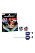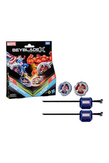 Experience Beyblade X, the next generation of Beyblade stadiums, launchers, and tops! The Beyblade X and Marvel Collab Captain America 4-70GB vs. Red Hulk 1-80R Multipack Set includes 2 right-spinning tops and 2 launchers (Beystadium required, sold separately). Launch right into battle or reconfigure the interchangeable blade, ratchet, and bit of tops in this Marvel Collab Multipack with those of other Beyblade X tops (sold separately) to build your perfect Beyblade top. Beyblade X features the X-Celerator Gear System to level-up your game. When the gear of a Beyblade X top engages the rail of the Beystadium arena, it can super-accelerate into an Xtreme Dash rocketing it around the stadium. Bladers launch their tops into fierce clashes against their opponent’s to score points – first to score 4 points wins. Hasbro Beyblade toys with authentic Takara Tomy die-cast metal tops make great kids gifts for boys and girls ages 8 and up.