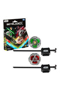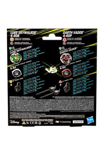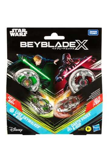 Experience the thrill of the next generation of Beyblade stadiums, launchers and tops: Beyblade X with the Beyblade X and Star Wars Collab Luke Skywalker 4-80B and Darth Vader 4-60B Multipack Set which includes 2 right-spinning tops and 2 launchers (Beystadium required, sold separately). Launch right into battle or reconfigure the interchangeable blade, ratchet, and bit of tops in this Star Wars Collab Multipack with those of other Beyblade X tops (sold separately) to create your own unsurpassable Bey. Beyblade X features the X-Celerator Gear System innovation to level-up your game. When the gear of a Beyblade X top engages the rail of the Beystadium arena, it can super-accelerate into an Xtreme Dash rocketing it around the stadium. Bladers launch their tops into fierce clashes against their opponent’s scoring points with each spin – first to score 4 points wins. Hasbro Beyblade toys with authentic Takara Tomy die-cast metal tops make great kids gifts for boys and girls ages 8 and up.