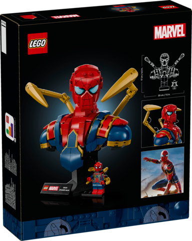Den fantastiske bysten av Iron Spider-Man (76326) er et LEGO® ǀ Marvel samlersett for voksne entusiaster. Det er en gjennomtenkt gave til superhelten i livet ditt, enten det er til kjæresten, pappa på farsdagen eller mamma på morsdagen. Dette ikoniske byggesettet har to bevegelige mekaniske armer og et roterbart hode. Den leveres med to utskiftbare baser med navneplate: ett med plass til en avtakbar Iron Spider-Man-minifigur og ett uten. Det tilfredsstillende byggeprosjektet kompletteres av en digital versjon av settets byggeinstruksjoner, som du finner i LEGO Builder appen. Det omfattende utvalget av LEGO-sett for voksne gir modellbyggere en virkelig oppslukende og givende opplevelse. Inneholder 379 deler.