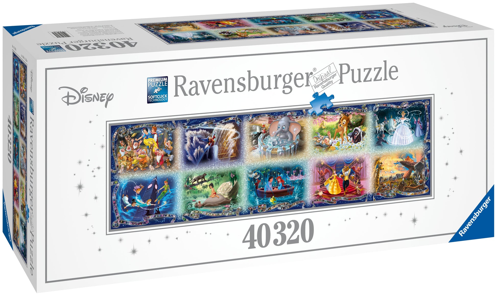 Fordyp deg i den Fantastiske Verden i dager, uker eller måneder med vårt 22 fot lange, 40 000-delers praktfulle montasje av "Minneverdige Disney-Øyeblikk"! r du klar til å sette sammen ett av de største puslespillene i verden? Dette gigantiske puslespillet inneholder 10 håndtegnede scener fra ikoniske Disney-filmer, inkludert Snøhvit, Fantasia, Dumbo, Bambi, Askepott, Peter Pan, Jungelboken, Den lille havfruen, Skjønnheten og udyret og Løvenes konge.