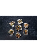 This set is infused with gears! It's hard to beat the value of the resin dice set. Beautiful and affordable, these are great critical boosters to metal dice. Each 16mm polyhedral set comes with 7 dice (d4, d6, d8, d10, d10 (00-90), d12, and d20).