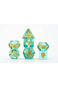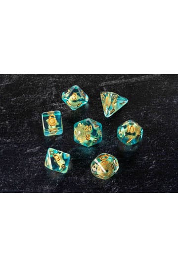 FanRoll resin dice have unique inclusions that add flare to any gaming table. These are full-sized 16mm polyhedral dice sets that come with 7 dice (d4, d6, d8, d10, d10%(00-90), d12, and d20).