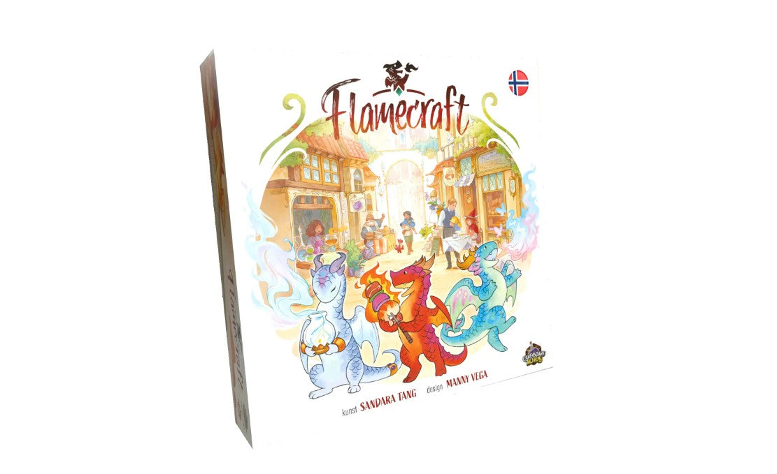 Artisan dragons, the smaller and magically talented versions of their larger (and destructive) cousins, are sought by shopkeepers so that they may delight customers with their flamecraft. You are a Flamekeeper, skilled in the art of conversing with dragons, placing them in their ideal home and using enchantments to entice them to produce wondrous things. Your reputation will grow as you aid the dragons and shopkeepers, and the Flamekeeper with the most reputation will be known as the Master of Flamecraft. In Flamecraft, 2-5 players take on the role of Flamekeepers, gathering items, placing dragons and casting enchantments to enhance the shops of the town. Dragons are specialized (bread, meat, iron, crystal, plant and potion) and the Flamekeepers know which shops are the best home for each. Visit a shop to gain items and a favor from one of the dragons there. Gathered items can be used to enchant a shop, gaining reputation and the favors of all the dragons in the shop. If you are fortunate enough to attract fancy dragons then you will have opportunities to secure even more reputation. —description from publisher