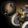 Med modellbilsettet LEGO® Icons Ford Model T (11376) for voksne kan du bygge en hyllest til en ikonisk bil. Denne autentiske versjonen av bilen fra 1910-tallet har et foldbart tekstiltak og delt frontrute som kan vippes ned, og en passasjerdør som kan åpnes. Modellen inkluderer også andre detaljer, som koffert bak og et svært detaljert førerhus med fungerende styring. Løft setet for å få tilgang til bensintanken. Det todelte panseret kan løftes fra hver side, slik at motoren vises, og viften snurrer når du dreier på sveiven. Veteranbil-modellen har svart karosseri, gylne detaljer og smale, hvite gummidekk med eikefelger og passer som elegant utstillingsmodell hjemme eller på kontoret. Denne kvalitetsmodellen passer som flott gave til alle som liker klassiske amerikanske biler. Oppdag det inspirerende utvalget av kreative LEGO byggesett (selges separat) som er laget spesielt for voksne Bygg smartere med LEGO Builder appen – zoom, roter i 3D, spor framdriften din og følg trinnvise, digitale instruksjoner. Settet består av 1060 deler.