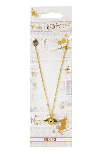 Show off your magical love for Harry Potter with this stunning Golden Snitch Gold Tone necklace! The charming necklace boasts a playful chibi-style charm on a 40 cm chain with an extender. Inspired by the infamous quidditch game, the Golden Snitch is a coveted playing piece, and with this necklace, you'll feel like a true seeker just like Harry himself. Suitable for ages 14 and up, this necklace is a must-have accessory for any die-hard Harry Potter fan. Part of a collection of officially licensed jewellery, don't miss out on adding this piece to your collection!