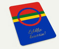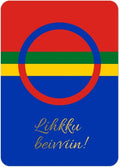 Ensides kort med det samiske flagget. "Lihkku beivviin!" trykket i gull.