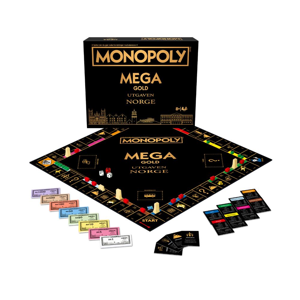 Kjøp flere eiendommer, bygg flere bygninger og håndter mer penger i denne megautgaven av familieklassikeren Monopoly. Det enorme spillebrettet har 12 ekstra felter, inkludert åtte nye gater – én for hver fargegruppe. Det finnes også skyskrapere som du kan legge til på gatene dine for å få skyhøy leie, og hvis du bygger depoter på jernbanestasjonene dine, får du dobbel leie! Den ekstra M1000-seddelen hjelper deg med å betale for alt dette, og du kan suse rundt på det større brettet ved hjelp av Speed Die og bussbilletter. Monopoly: The Mega Edition er raskt og enkelt å spille og byr på nye muligheter og større risiko.