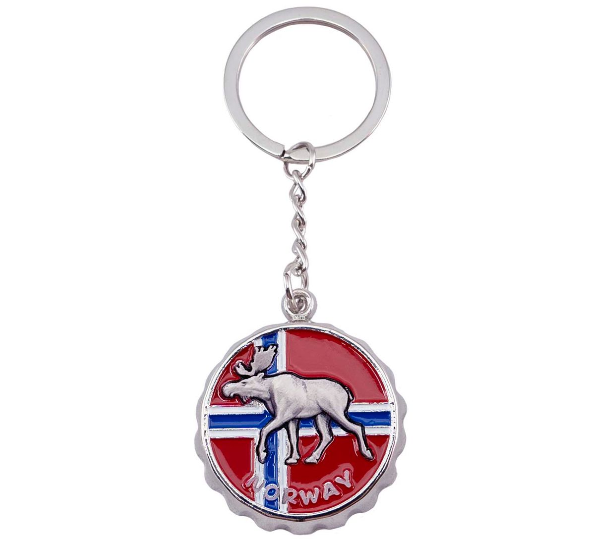 Nøkkelring, flaskeåpner, elg og flagg