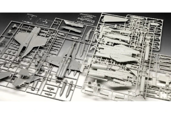 Dette modellbyggesettet passer for både erfarne modellbyggere og nybegynnere. Den inkluderer alt du trenger for å trofast bygge F-14D Super Tomcat og F/A-18E Super Hornet. Perfekt for flyfans, samlere og alle som brenner for modellverdenen.
