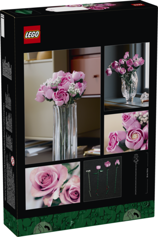 Med LEGO® Botanicals byggesettet Rosa rosebukett (10374) for voksne kan du skape en elegant, klossebygd blomsteroppsats og la deg fascinere av alle de vakre detaljene. Kos deg med et engasjerende prosjekt, hvor du sakte men sikkert skaper en vakker LEGO bukett med tolv rosa roser i forskjellige stadier – fire roser i fullt flor, fire delvis utsprungne roser og fire rosenknopper. Rosene har forskjellige rosatoner som gjør dem ekstra realistiske, og buketten består også av fire sjarmerende kvister med hvitt brudeslør. Settet kan like gjerne bygges alene som sammen med andre, og inkluderer tre sett med byggeinstruksjoner, slik at du kan bygge sammen med venner eller familiemedlemmer, og etterpå kan dere stolt stille ut den ferdige roseoppsatsen. Blomster er den perfekte gave uansett anledning, og dette byggesettet kan gis som en byggbar og evigvarende gave til morsdagen eller valentinsdagen, og som bursdagsgave til både kvinner, menn og blomsterelskere. Settet inneholder 789 deler.